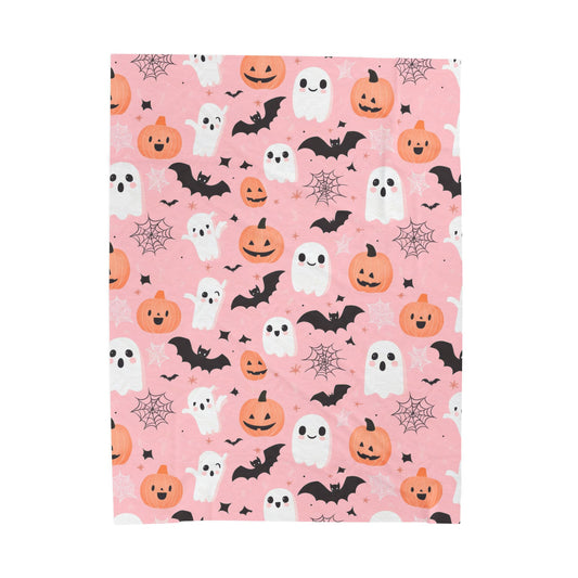 Cozy Halloween Velveteen Plush Blanket, Spooky Ghosts and Pumpkins Throw Blanket, Fall Decor, Halloween Gift, Soft Blanket for Kids