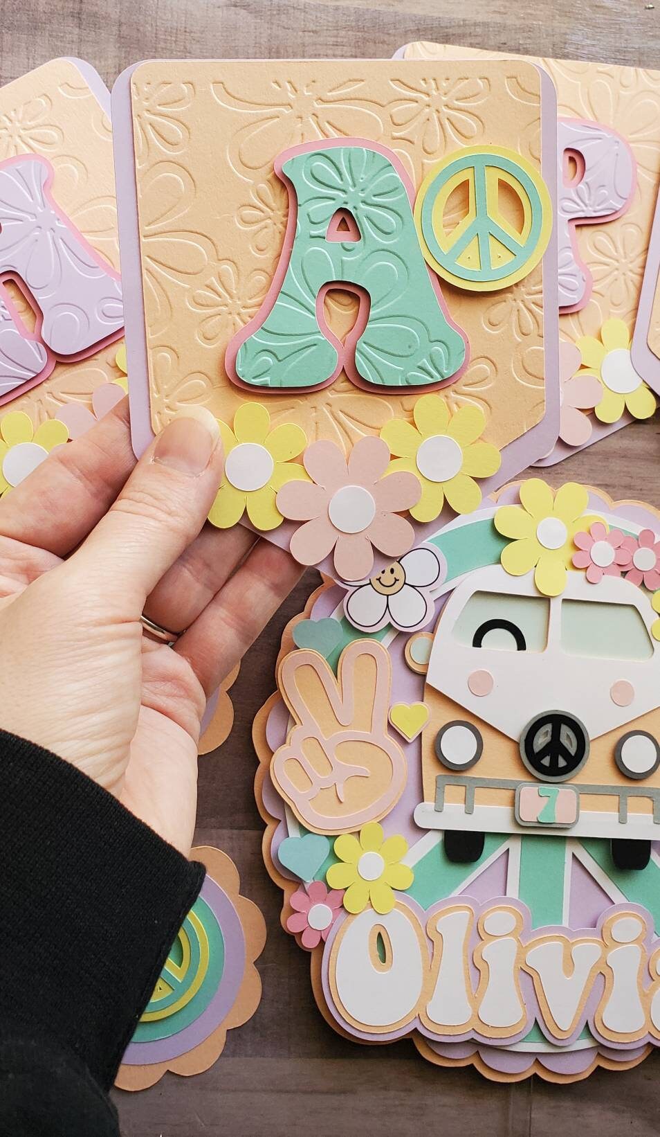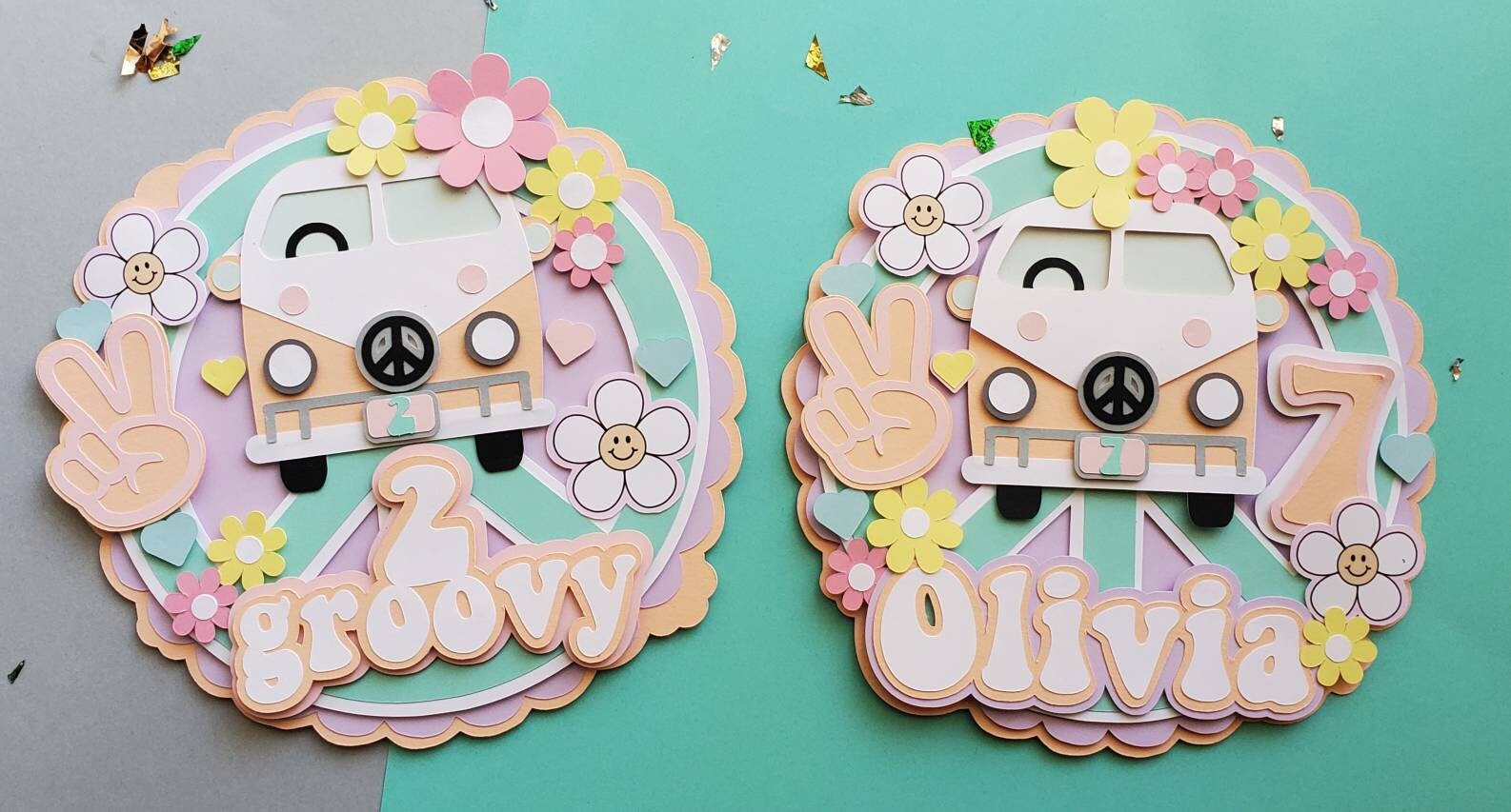 This listing is for a custom Groovy party package! Choose from our cake topper, Happy Birthday banner and cupcake picks (12)- or the whole package! You can customize the size and colors!